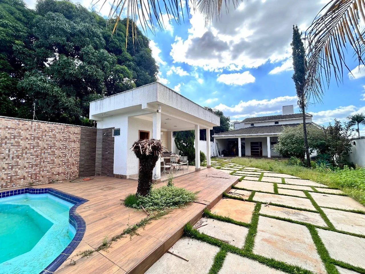 Um Sobrado com piscina e um lote Grande , sendo 2 quartos no terreo e quartos na parte superior , sala , cozinha , espaco gourmet , e muito mais