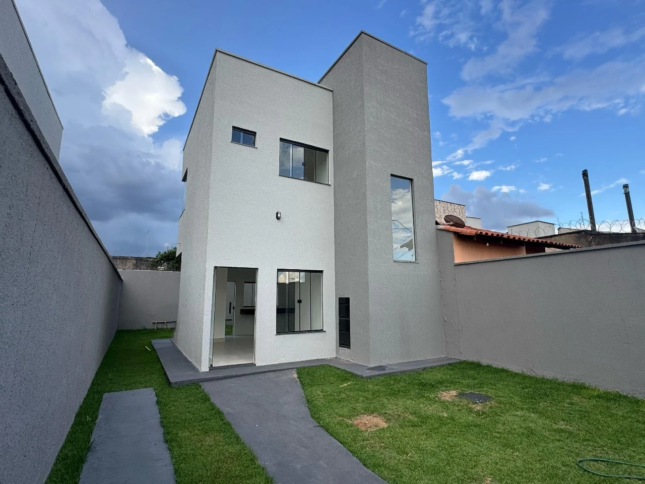 - 150 m² de área total - 77 m² de área construída - 2 quartos / 1 suíte - 2 vagas de garagem individual - sacada no quarto suíte, 2 vagas, espaço para área gourmet e piscina - próximo ao jardins Madri - R$ 340.000,00